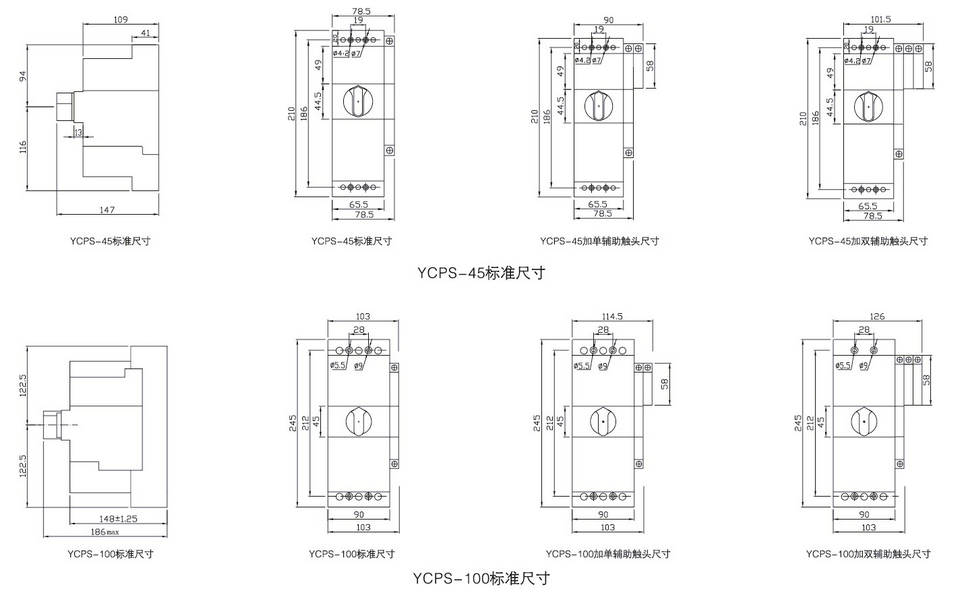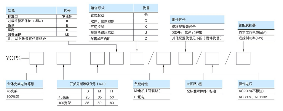 YCPS控制與保護開關電器主要用于交流50 HZ(60HZ)、額定電壓至690V 、額定電流自O.25A至125A的電力系統中,能夠接通、承載和分斷正常條件下包括規(guī)定的運行過載條件下的電流,且能夠接通、承載并分斷規(guī)定的非正常條件下的電流,如短路電流。