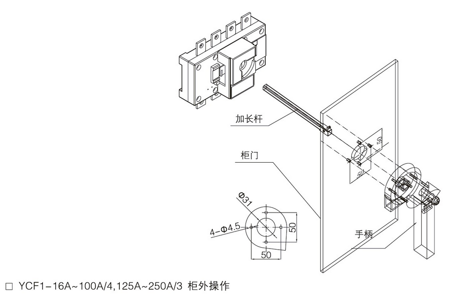 可根據(jù)需要提供常開常閉輔助觸頭及正面可視窗口,以滿足客戶的多種需求。分?jǐn)辔恢脮r(shí),可加掛鎖鎖住手柄,以防止誤操作,有效保證了開關(guān)的操作安全。